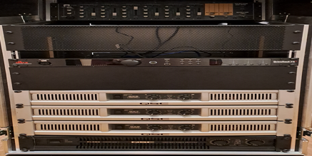 Versterking: QSC 4x 1200 watt laag, 4x 500 watt low-mid, 4x 300 watt mid-high