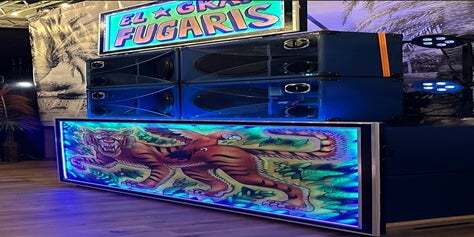 De keuze voor de topspeakers vindt zijn oorsprong in 1992. Discotheek St. Tropez verkocht toen zijn set van 4 Karlson K15 speakers die we in gebruik namen voor onze Drive in show (DMC). Deze hele bijzondere speakers afgewerkt met Plexiglas gordijn openingen en de bekende Fane slot-bullet tweeters heb ik altijd bewaard in mijn schuur. Uiteindelijk hebben we deze speakers voorzien van nieuwe drivers en gerenoveerde tweeters. Ook de elektronica is vervangen zijn ze geschilder in de kleuren van de subwoofers.